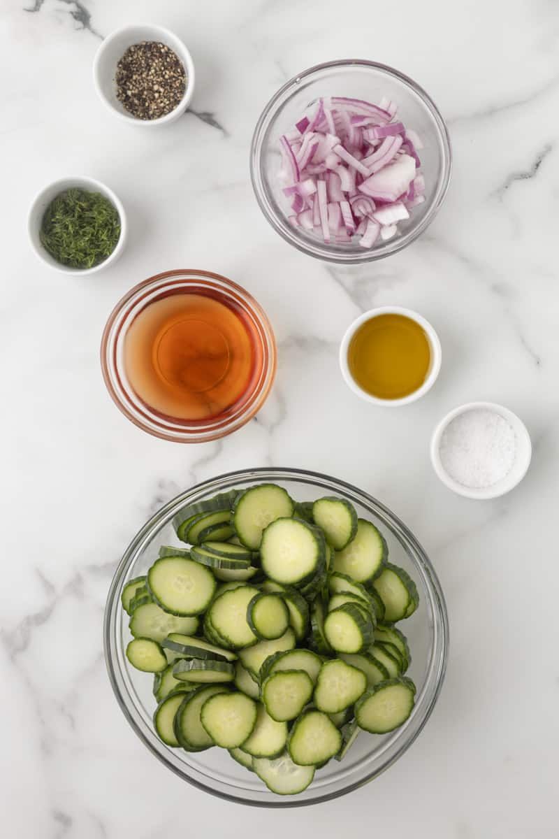 Dill cucumber salad will keep for up to 5 days in the fridge, but keep in mind the onions and the cucumbers will soften over time.