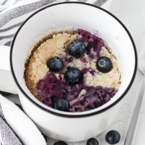 If you have saved this keto blueberry muffin in a mug and want to warm it before eating it again, you can reheat it in the microwave. I would only heat it for 30 seconds or less because it might start to dry out.