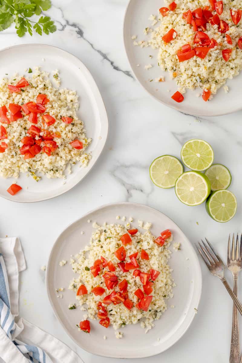 Cilantro Lime cauliflower rice. To keep things low carb instead of using rice we have changed things and made a low carb rice alternative that has all the flavors of traditional rice.