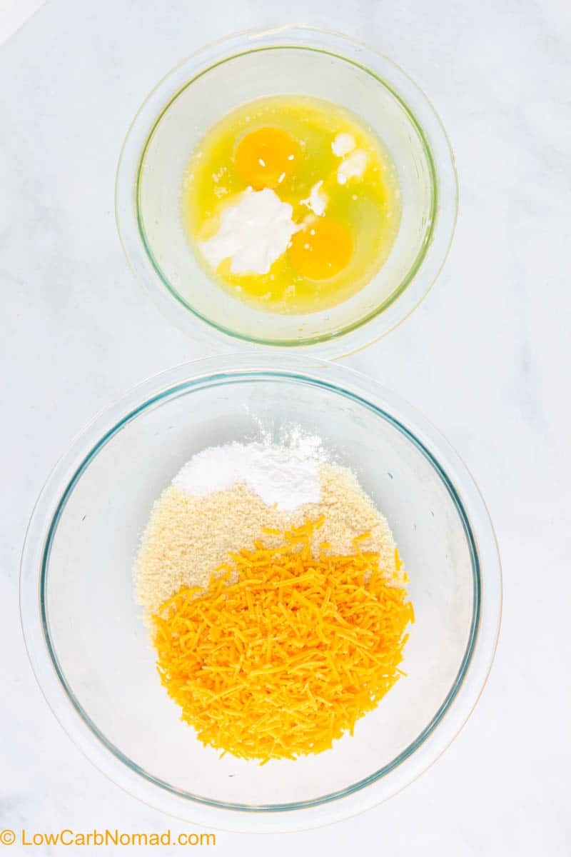 - In another medium bowl combine the flour, baking powder, salt, and cheese.
