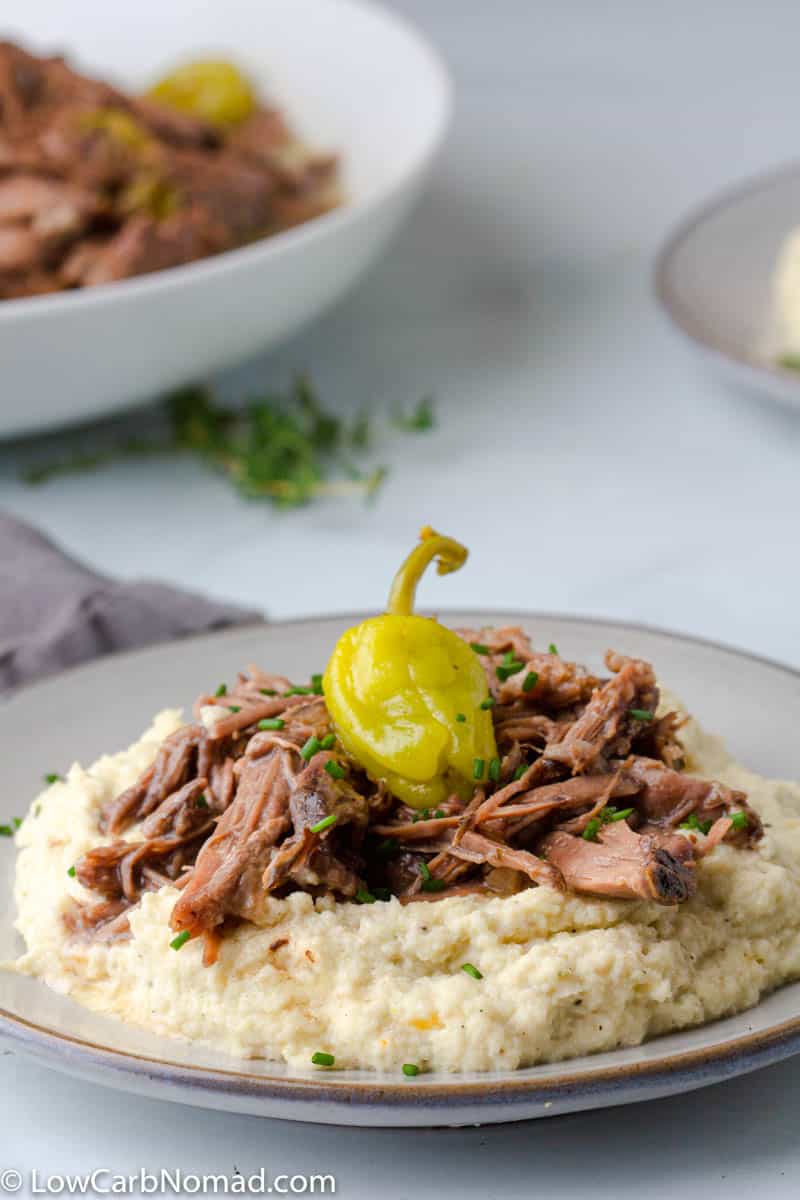There are lots of side dishes that pair perfectly with this low carb pot roast. Many times we serve it over cauliflower mash, which is what it is served on top of in the photos. If you are not a fan of Cauliflower mash, there are lots of other tasty sides to serve.