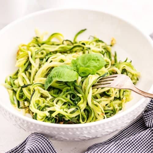 I serve zoodles like I do pasta and serve this healthy zucchini noodle recipe the same way and stick with a vegetable side, a salad, and sometimes I will make a keto bread or keto rolls to go with it. There are lots of tasty side dishes, if you are looking for some be sure to check out some of our favorites.